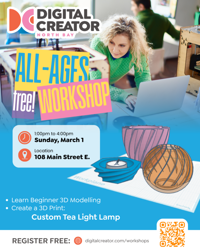 Digital Creator is launching a series of free, all-ages workshops! In this 3D Printing Workshop, participants will learn step-by-step how to create their own custom tea light holder!